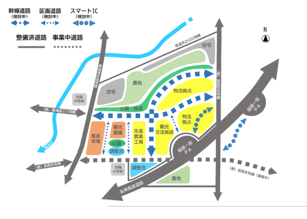 当地区の土地区画整理事業は、組合区画整理事業において業務代行方式を採用し、デベロッパーやゼネコンなど民間事業者と連携して事業を推進する予定です。
